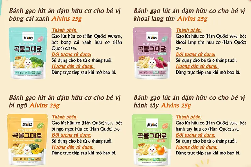 Sản phẩm của thương hiệu Alvins - thương hiệu thực phẩm dinh dưỡng nổi tiếng đến từ Hàn Quốc với các sản phẩm đạt chứng nhận hữu cơ Hàn Quốc, không chứa đường, chất nhân tạo hay chất bảo quản nên đảm bảo an toàn cho sức khỏe của bé.