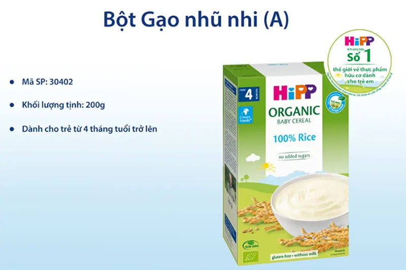 Đặc trưng sản phẩm dinh dưỡng HiPP Organic bột gạo nhũ nhi (200g):