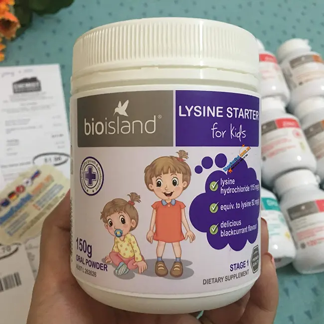 - Bio Island Lysine Starter for Kids giúp trẻ tăng cường hệ miễn dịch, ngăn chặn và chống lại nhiều loại vi khuẩn, virus, giảm tần suất tái nhiễm và chữa lành vết thương nhanh chóng hơn.