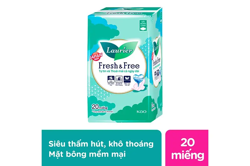 Tên sản phẩm: Băng vệ sinh Laurier Fresh & Free siêu mỏng cánh 20 miếng