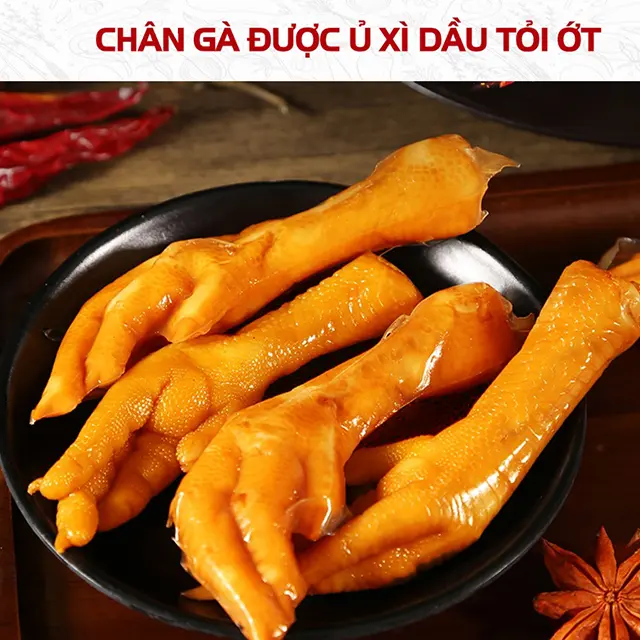 + Thành phần: Chân gà, ớt xanh, muối, gia vị…