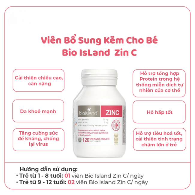 + Là một khoáng chất quan trọng giúp duy trì làn da khỏe mạnh, tăng cường chức năng thị giác và duy trì lượng đường trong máu bình thường ở trẻ em khỏe mạnh.