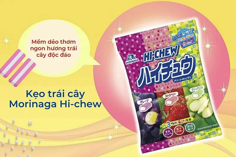 + Nho: syrup (31%), đường (30%), dầu thực vật, gelatin, chiết xuất quả nho (7%), chất củ điều chỉnh độ acid E270, hương thực phẩm tự nhiên và tổng hợp, chất nhũ hóa lecithin, màu đỏ của cải, màu xanh của sơn chi.