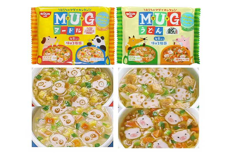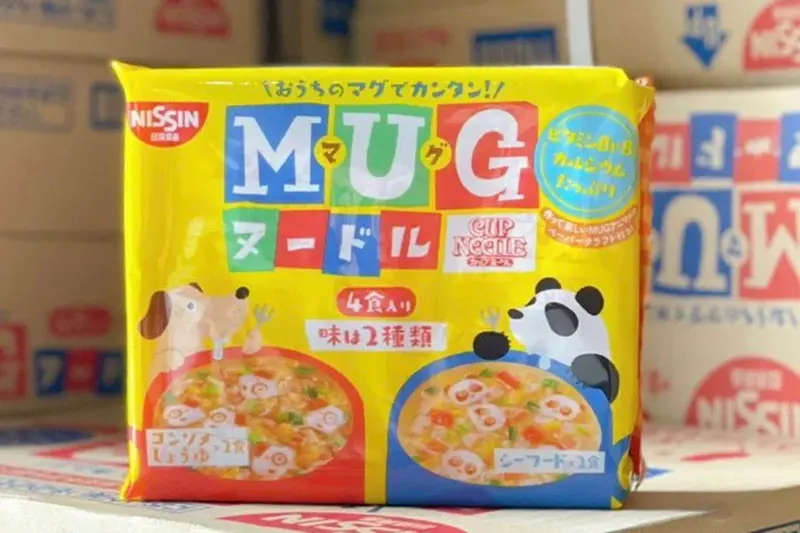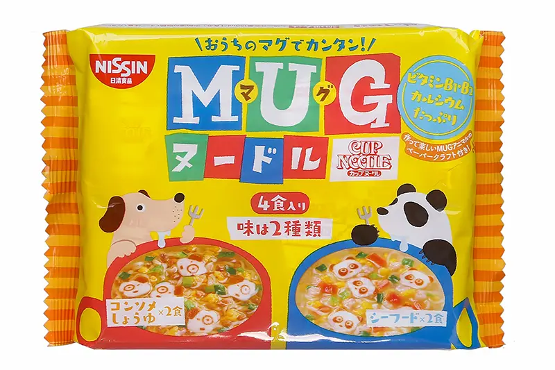 - Mỳ ăn liền MUG của Nhật có 4 gói nhỏ ở bên trong, hấp dẫn bé bởi vị hải sản thơm ngon, lạ miệng cùng màu sắc hài hòa của thịt, rau mang tới những giờ phút ăn uống thật ngon miệng và đầy hứng thú cho bé.