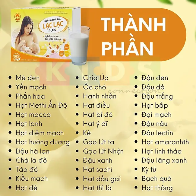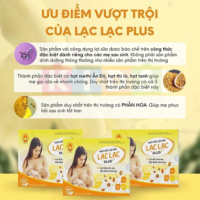 Ngũ cốc lợi sữa Lạc Lạc Plus 600g (hộp 30 gói) |
