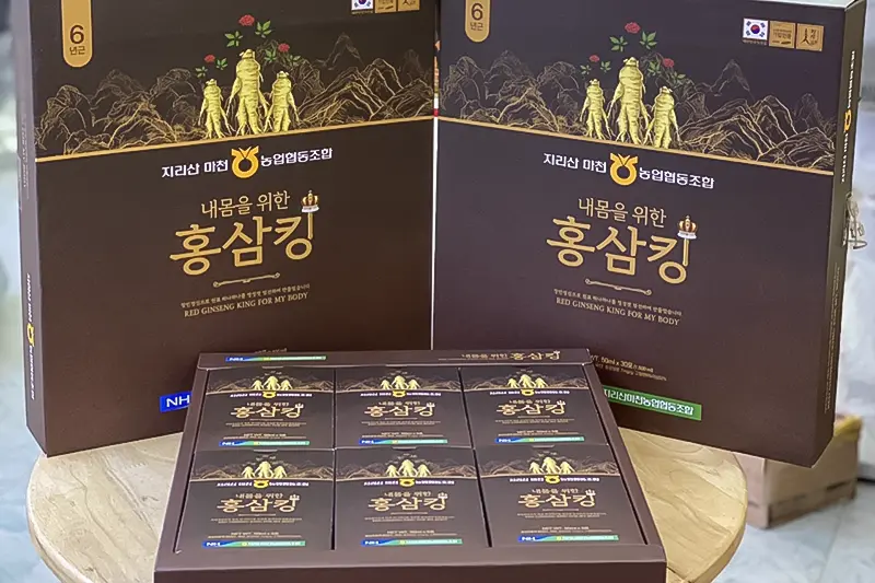Nước Chiết Xuất Hồng Sâm Vua Nonghyup Hộp 30 Gói x 50ml được đóng gói nhỏ gọn trong túi PE đảm bảo an toàn chất lượng, tiện dụng để bảo quản, có thể mang theo bên người, sử dụng ngay tại nhà hoặc nơi làm việc, thậm chí có thể mang đi công tác hoặc nơi du lịch.