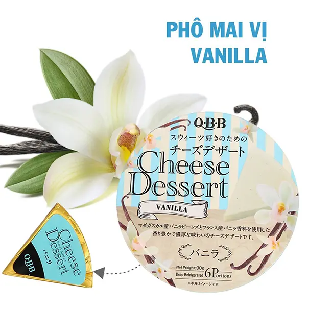 Phô mai vị vanilla 90g (6 miếng) QBB được sản xuất từ kem, bơ, sữa bột tách béo cùng các hạt vani cho hương vị ngọt thơm tự nhiên đặc biệt vừa miệng.