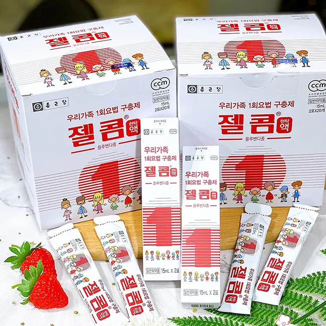 Thành phần: Hoạt chất chính là Flubendazol hàm lượng 500mg. Tá dược hàm lượng vừa đủ 1 gói 15ml.| Tên sản phẩm | Siro tẩy giun Zelcom Hàn Quốc |