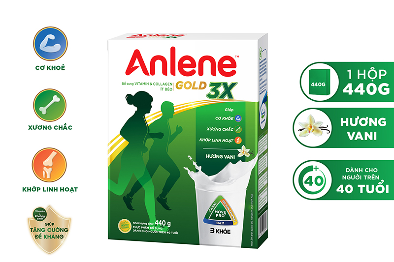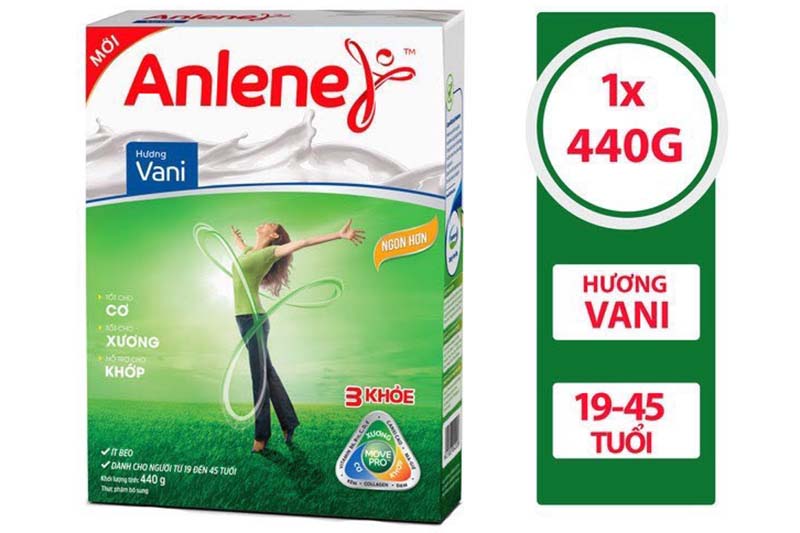 Sữa AnleneDưỡng chất tốt cho xương: Canxi, Vitamin D, Magie, Kẽm đáp ứng chuẩn 100% nhu cầu theo khuyến nghị của Bộ Y Tế.