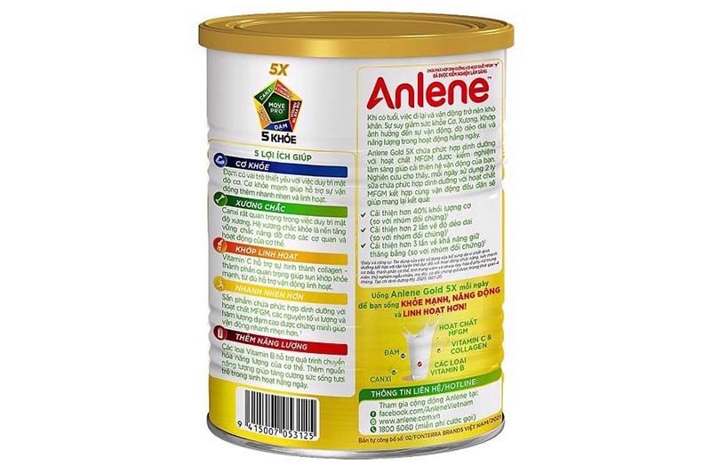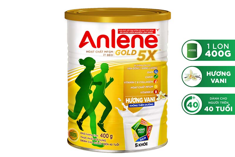 - Sữa Anlene Gold 5X chứa phức hợp dinh dưỡng với hoạt chất MFGM được kiểm nghiệm lâm sàng, giúp cải thiện hệ vận động của bạn. Nghiên cứu cho thấy, mỗi ngày sử dụng 2 ly sữa chứa phức hợp dinh dưỡng với hoạt chất MFGM kết hợp cùng vận động đều đặn sẽ giúp mang lại kết quả.