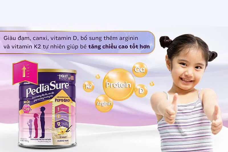 PediaSure 850g là loại sữa bột cho bé 1 tuổi đến 10 tuổi, đặc biệt phù hợp với các bé hay ốm vặt, nhẹ cân, thấp còi, suy dinh dưỡng, có sức đề kháng kém. Ngoài ra sữa Pediasure sing còn phù hợp với các bé biếng ăn, ăn không ngon miệng, trẻ có nhu cầu năng lượng cao.