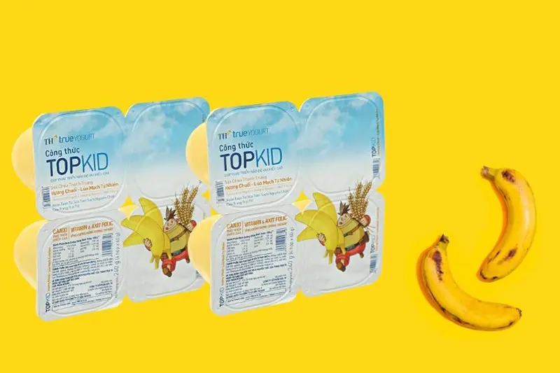 Sữa chua TH Topkid chuối lúa mạch hộp 60g - vỉ 4 hộp