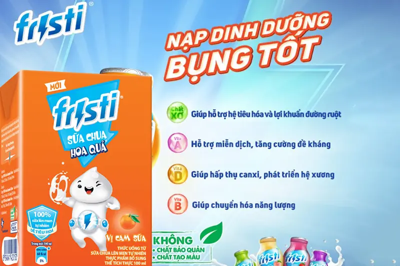 Sữa chua uống Fristi cam hộp 110ml - vỉ 4 hộp