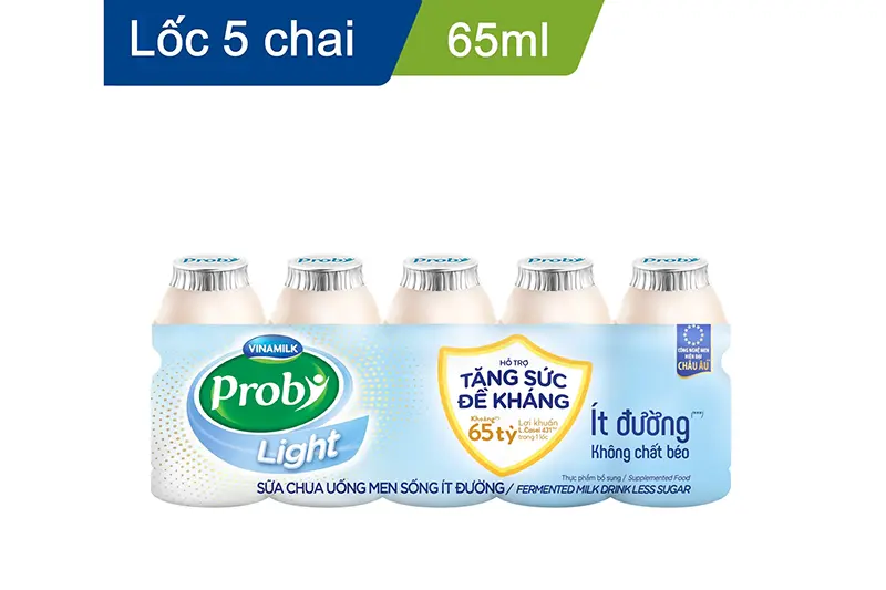 Sữa chua uống Probi Light ít đường lọ 65ml - lốc 5 lọ