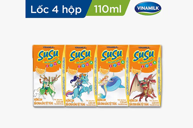 Sữa chua uống Susu cam hộp 110ml - vỉ 4 hộp