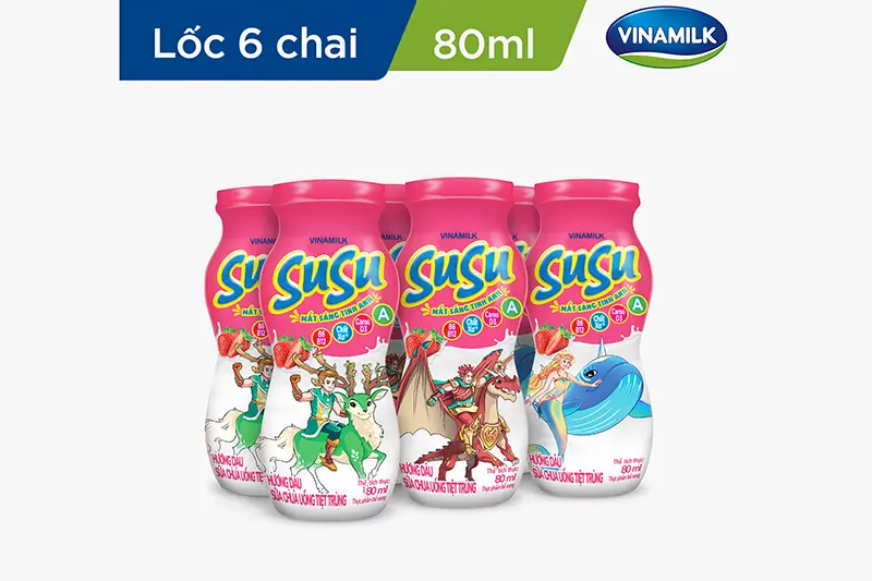 Sữa chua uống Susu dâu lọ 80ml - lốc 6 lọ