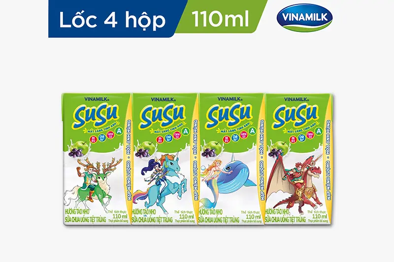 Sữa chua uống Susu táo nho hộp 110ml - vỉ 4 hộp