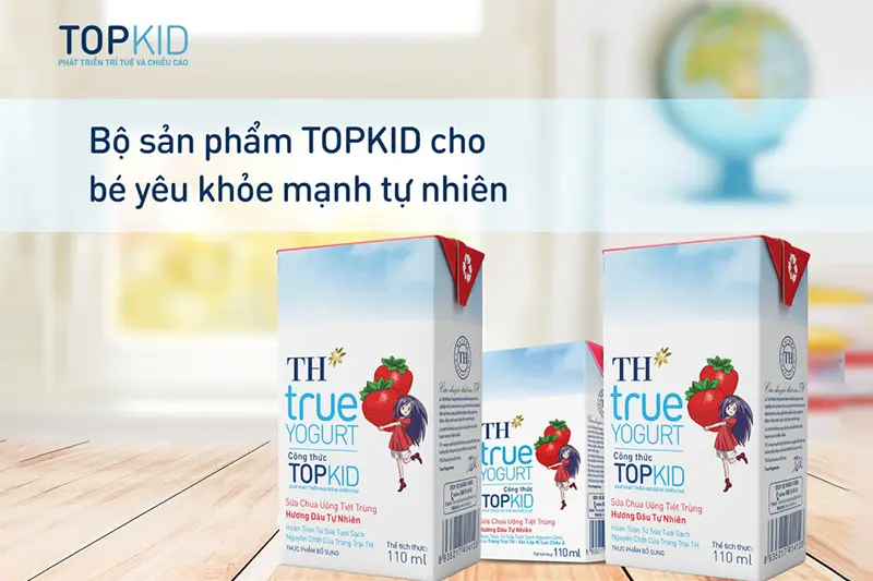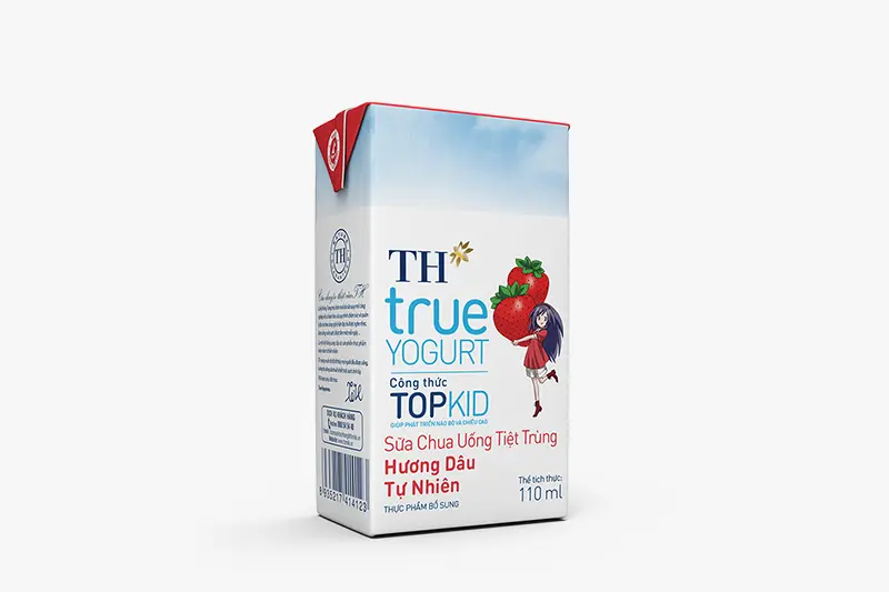 Sữa chua uống TH Topkid dâu hộp 110ml - vỉ 4 hộp