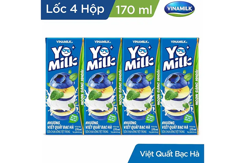 Sữa chua uống Vinamilk hương việt quất hộp 170ml - vỉ 4 hộp