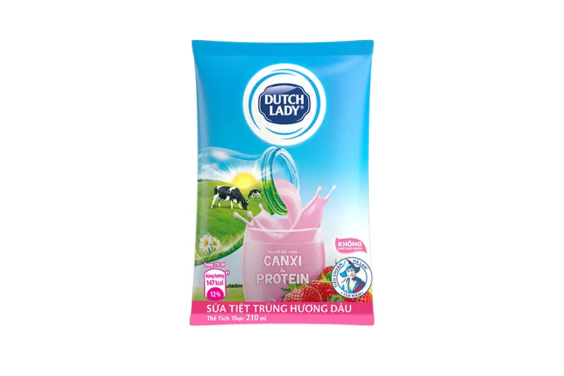 + Thành phần: Nước, sữa tươi (20%), bột sữa gầy, đường, chất béo sữa, lactose, chất nhũ hóa (471), cholin, hướng dâu tổng hợp dùng trong thực phẩm, chất ổn định (407). màu tổng hợp dùng trong thực phẩm (129), vitamin D3.