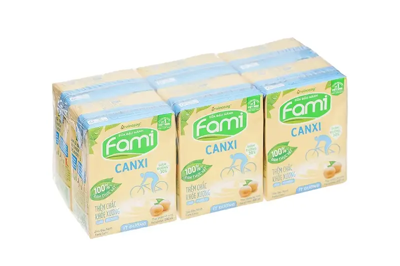 Sữa đậu nành Fami Canxi ít đường hộp 200ml - vỉ 6 hộp