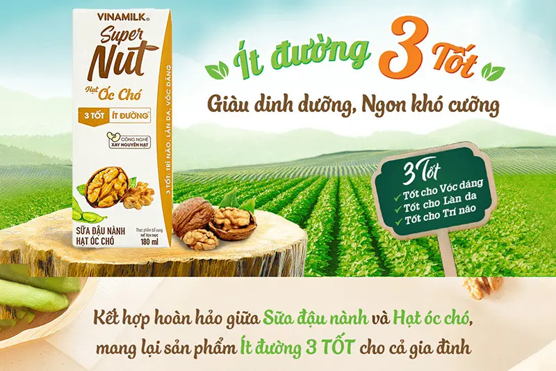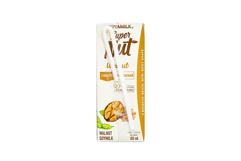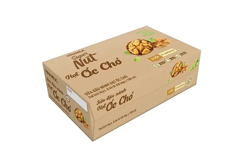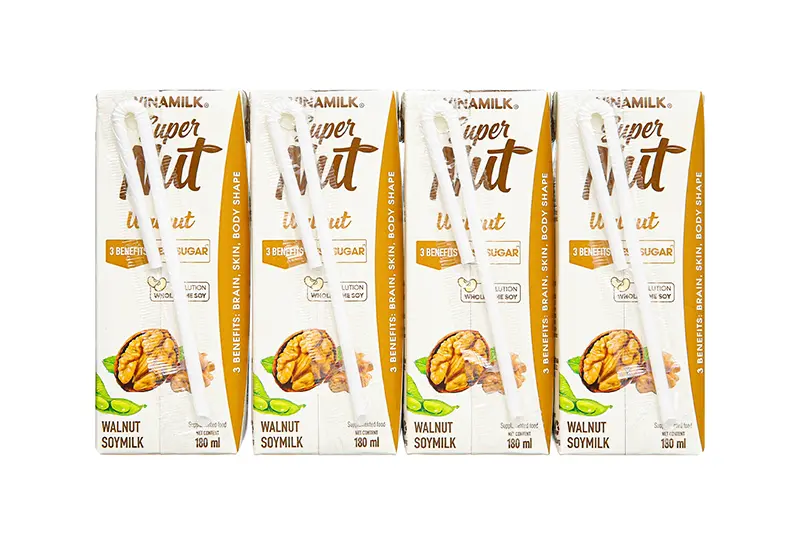 Sữa đậu nành Vinamilk super nut óc chó ít đường hộp 180ml - vỉ 4 hộp