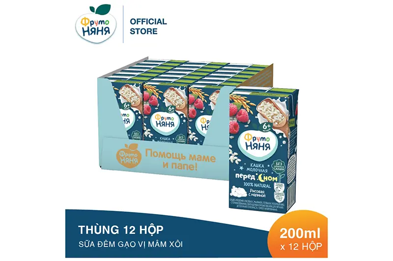 • Sữa đêm Fruto Nga mâm xôi lúa mạch - hộp 200ml