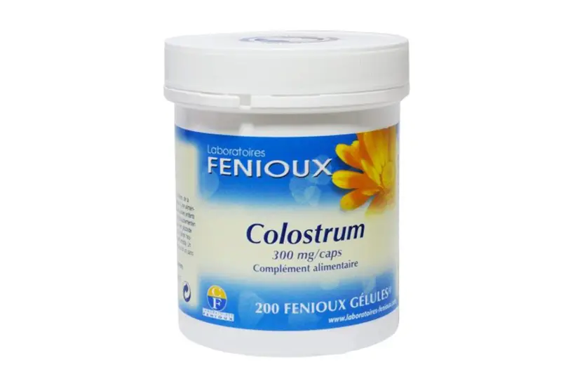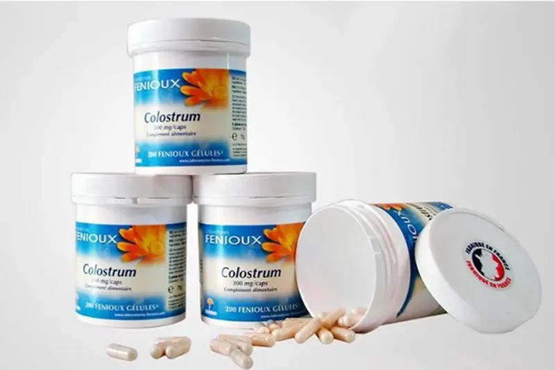 Sản phẩm sữa non Fenioux Colostrum được sản xuất theo quy trình về Chất lượng nghiêm ngặt của Pháp. Hộp nhựa chứa 200 viên nhộng. Mỗi viên chứa 300mg tinh chất sữa non 100%.