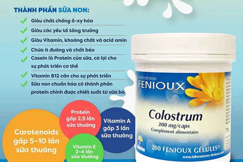 Sữa non Pháp Fenioux Colostrum 300mg là một loại sữa non có độ béo thấp nhưng hàm lượng carbohydrate, đạm cao và đặc biệt là chứa nhiều kháng thể có lợi cho sức khỏe và sự phát triển toàn diện của trẻ nhỏ.