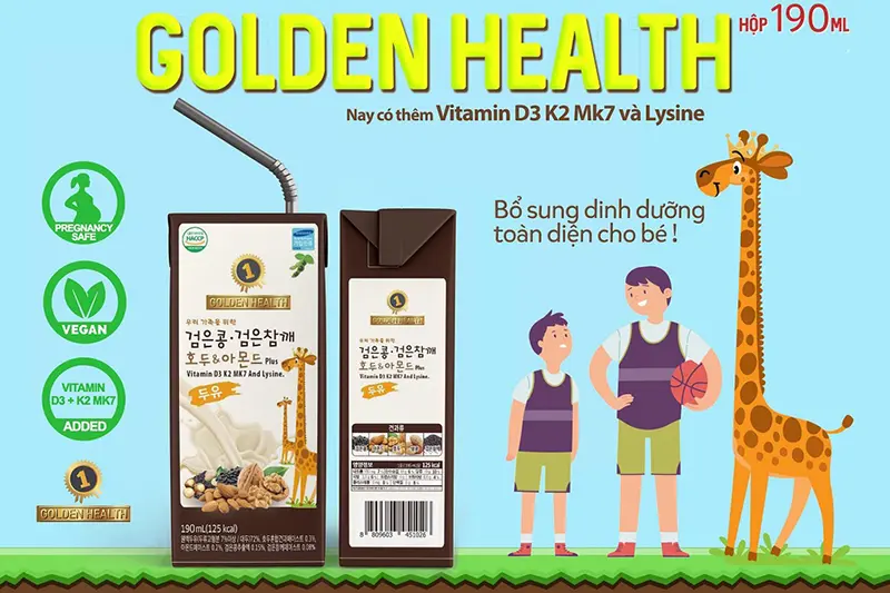 Sữa óc chó hạnh nhân Golden Health hộp 190ml – lốc 6 hộp