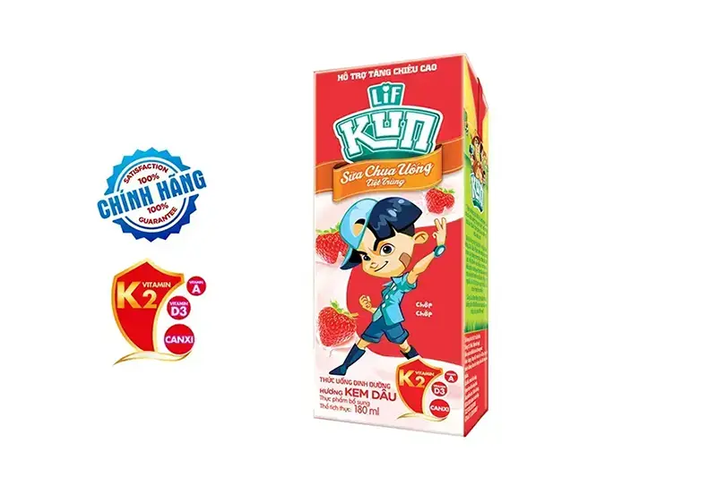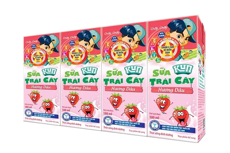 Sữa trái cây Kun dâu hộp 180ml - vỉ 4 hộp