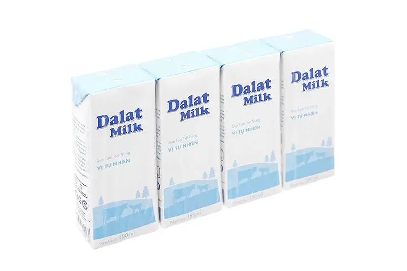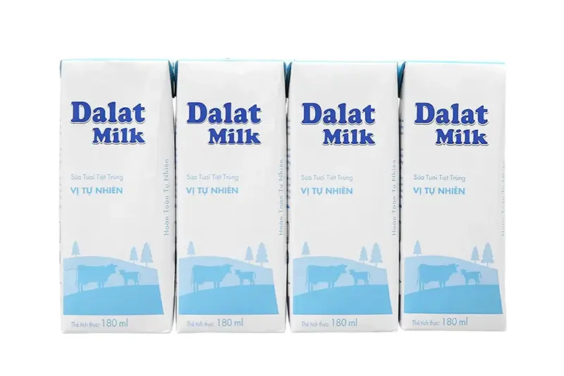 Sữa tươi Dalatmilk tự nhiên hộp 180ml - vỉ 4 hộp