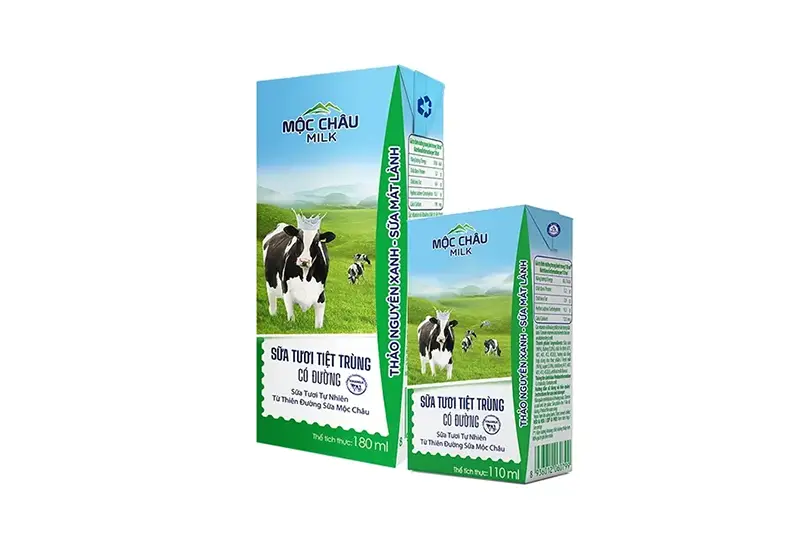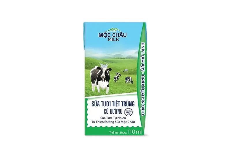 Sữa tươi Mộc Châu có đường hộp 110ml - vỉ 4 hộp