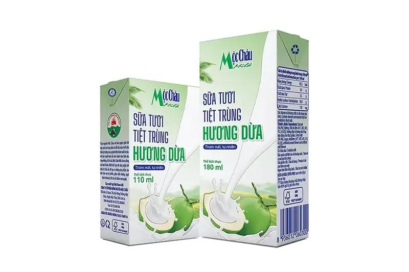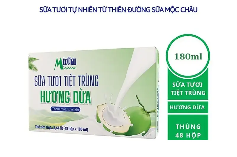 Sữa tươi Mộc châu vị dừa hộp 180ml - vỉ 4 hộp