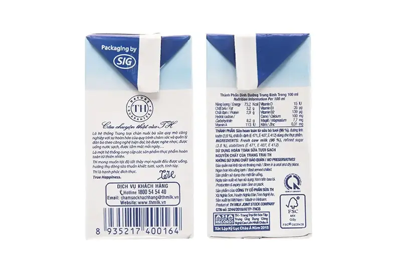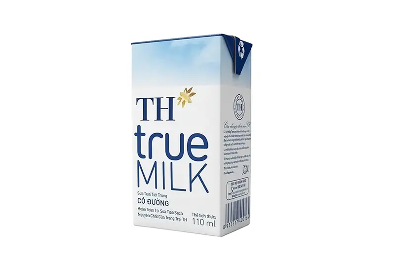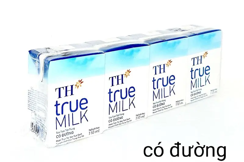 Sữa tươi TH có đường hộp 110ml - vỉ 4 hộp