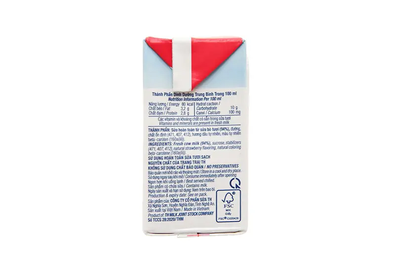 Sữa tươi TH hương dâu hộp 110ml - vỉ 4 hộp