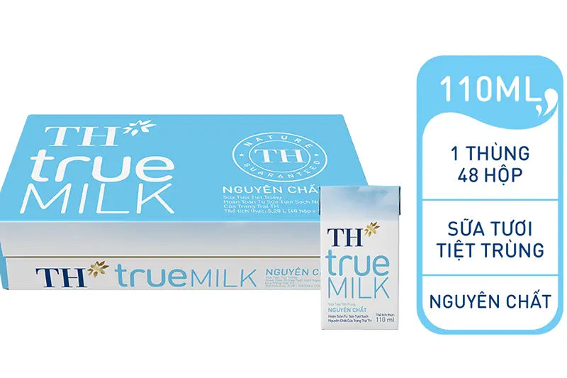 Sữa tươi TH nguyên chất hộp 110ml - vỉ 4 hộp