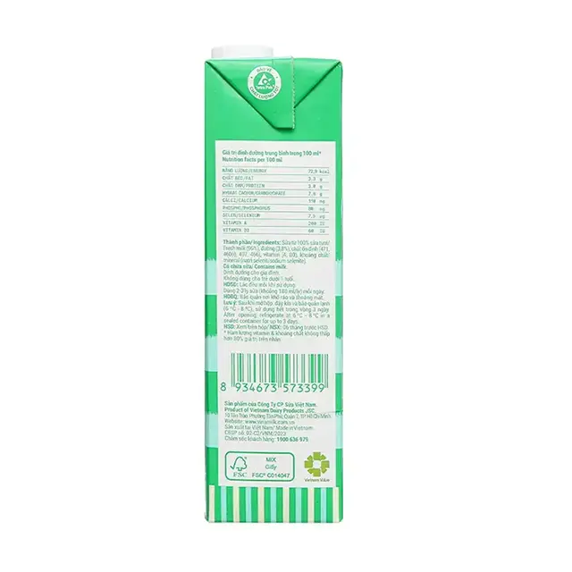 Sữa tươi Vinamilk có đường - hộp 1 lít
