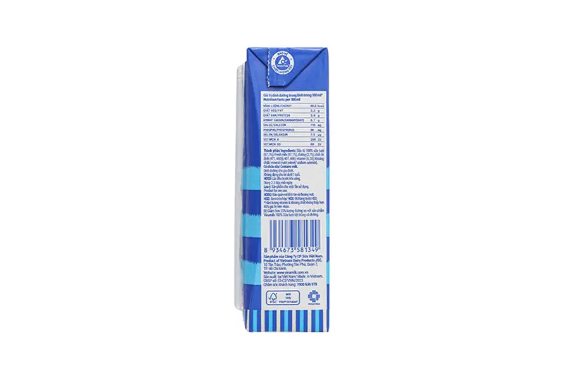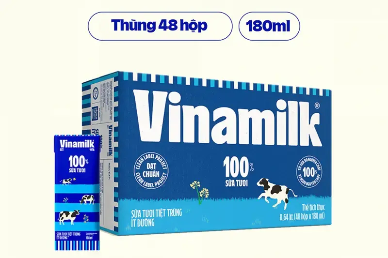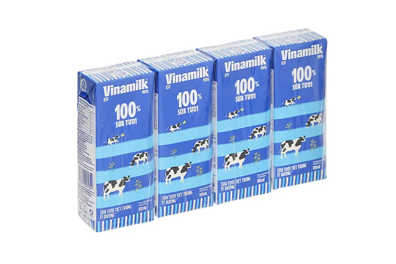 Sữa tươi Vinamilk ít đường hộp 180ml - vỉ 4 hộp