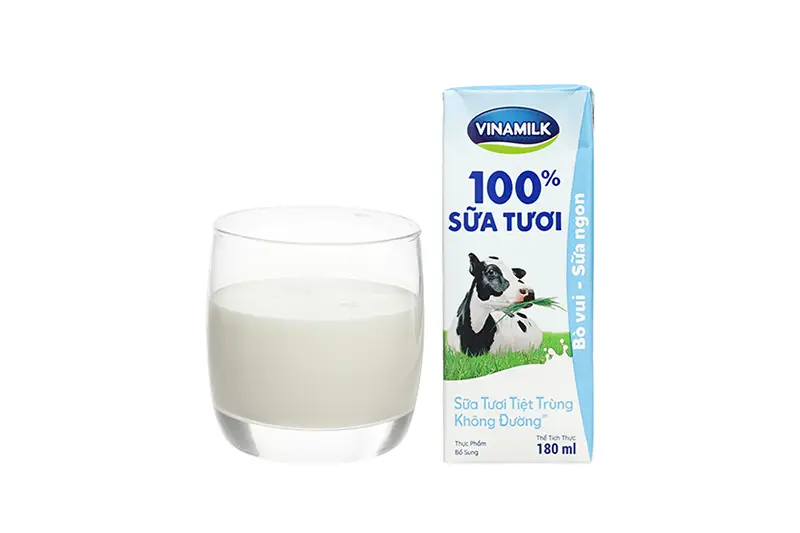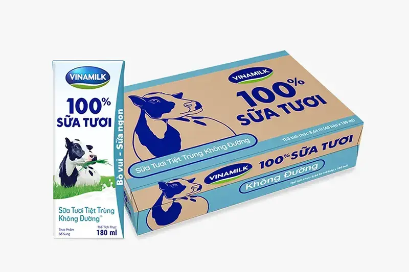 Sữa tươi Vinamilk không đường hộp 180ml - vỉ 4 hộp