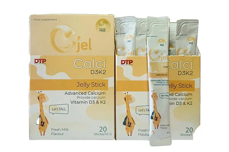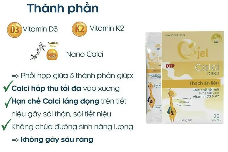 ✅Thứ hai - thành phần "kẹo thạch Cjel" còn chứa thêm Calci nano sinh học, giúp dễ dàng hấp thu Calci vào xương cho bé. Sự phối hợp giữa Calci, vitamin D3, vitamin K2 giúp Calci được hấp thu tối đa vào xương và hạn chế calci lắng đọng trên tiết niệu gây sỏi thận, sỏi tiết niệu. Thành phần Prebiotic, không chỉ giúp cân bằng vi sinh vật tốt đường ruột mà còn tăng cường hấp thu calci vào xương cho bé.