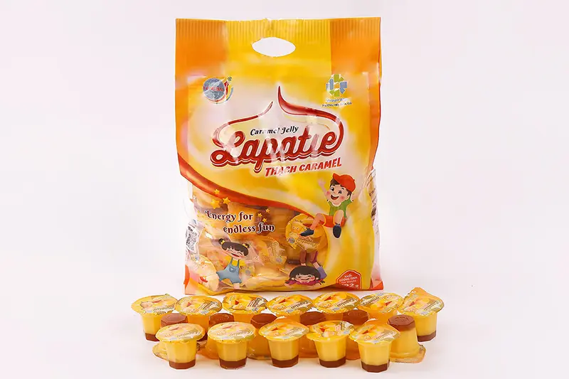 Thạch Caramel Lapatie do công ty Long Hải sản xuất là sự kết hợp giữa bột Carragennan (rau câu), đường kính trắng, hương vị caramel và hương vị trứng tươi. Sản phẩm kết hợp một số chất bổ sung thêm như: Nước tinh lọc, đường kính trắng, sữa bột béo, bột Locust bean gum, đường glucoza, kem sữa, bột cacao, đường Sucralose,..