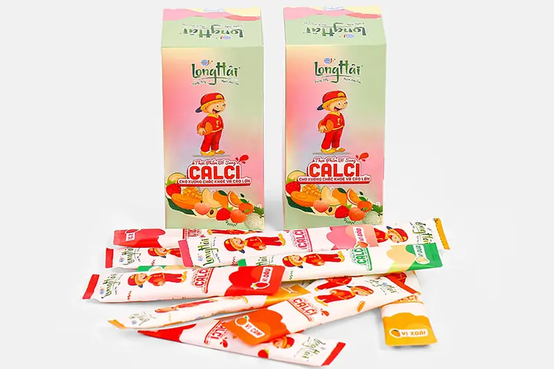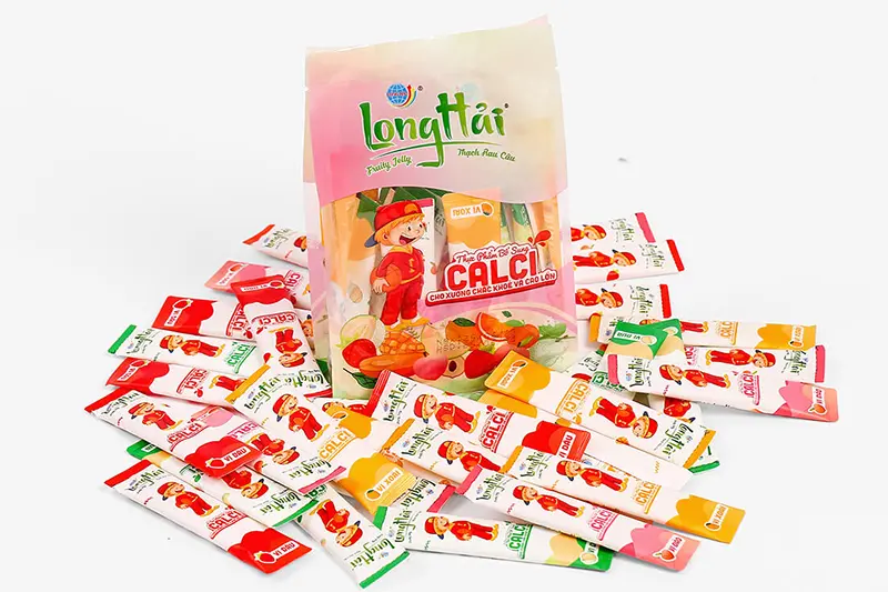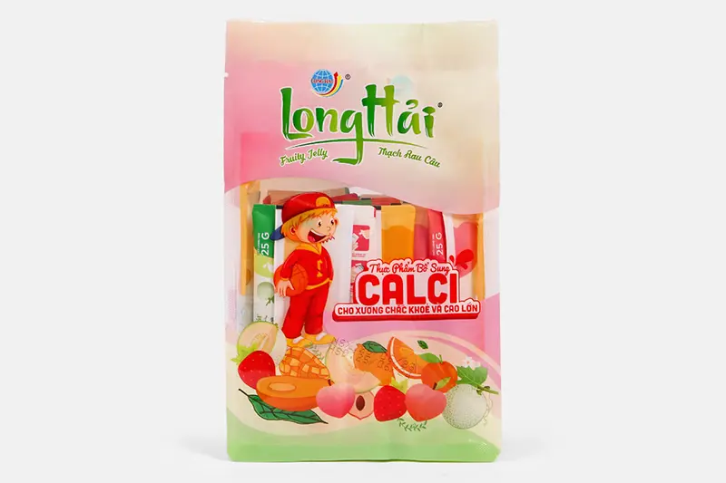 Thạch rau câu Long Hải bổ sung canxi do công ty Long Hải sản xuất là sự kết hợp giữa bột Carragennan (rau câu), đường mía, Calcium lactate, Nước tinh lọc, đường kính trắng, sữa bột béo, tinh chất rong biển, tinh chất sữa, hương hoa quả tổng hợp.