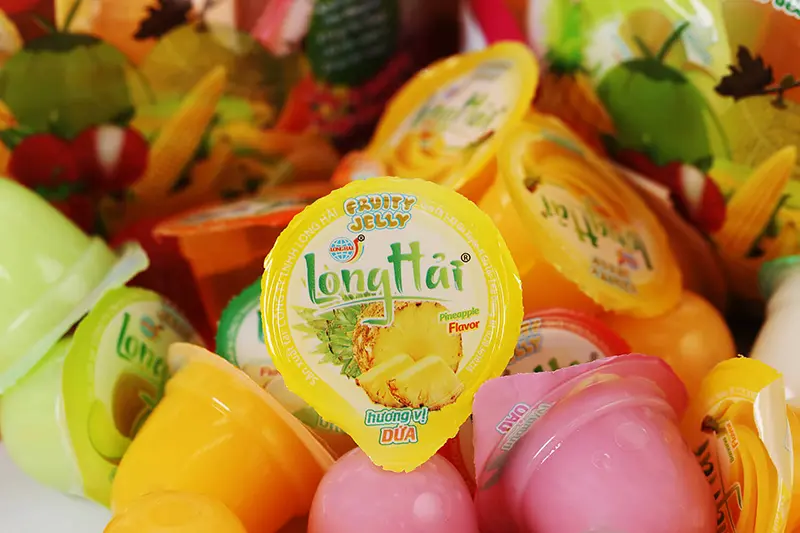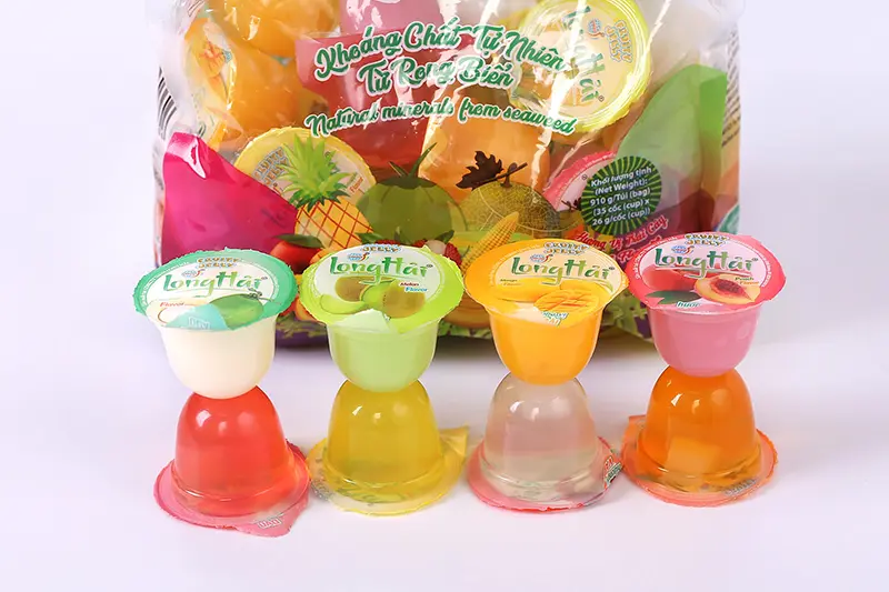 Sản phẩm Thạch rau câu Long Hải kết hợp một số chất bổ sung thêm như: Bột sữa gầy. Chất điều chỉnh độ axit gồm (Acidity regulators): Acid citric - Citric acid (INS 330); Tinh bột Konjac (Konjac powder); Bột rong biển; Chất làm dày Kali clorid; Chất bảo quản Kali sorbat; Đường hóa học tổng hợp; Chất ổn định Natri Hexametaphotphat; Tinh bột vòng Beta-cyclodex; Muối ăn; Chất nền Ethyl maltol: Chất chống tạo bọt;
