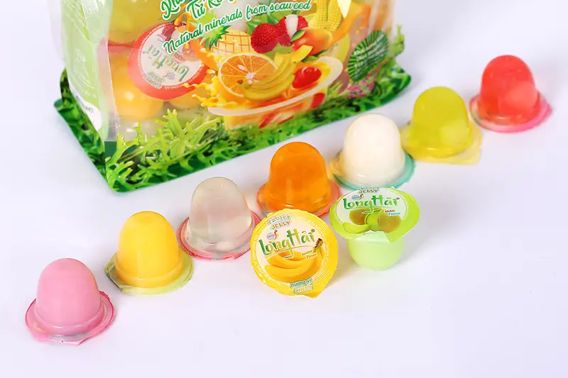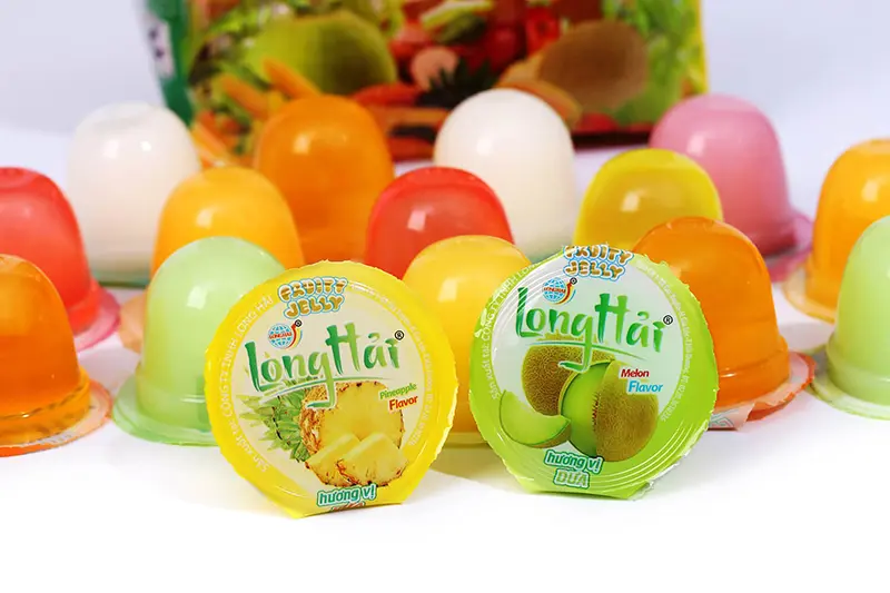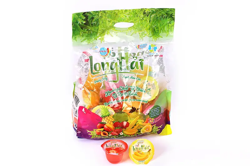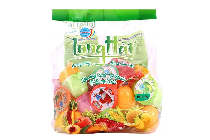 Thạch rau câu Long Hải túi KQX 910 g do công ty Long Hải sản xuất là sự kết hợp giữa bột Carragennan (rau câu), bột Konjac (khoai nưa) tỷ lệ 60/30, đường kính trắng, thạch dừa Bến Tre, hương vị hoa quả tổng hợp: Dừa, Cam, Đào, Dứa, Dưa, Ngô, Xoài, Chuối, Vải, Dâu.