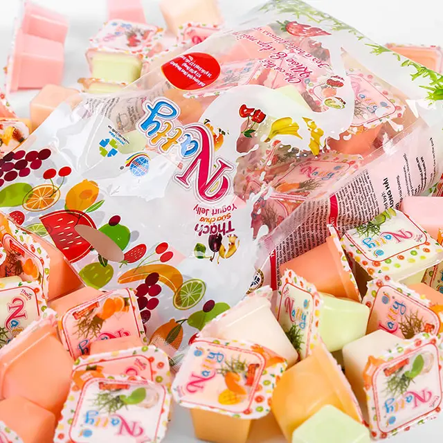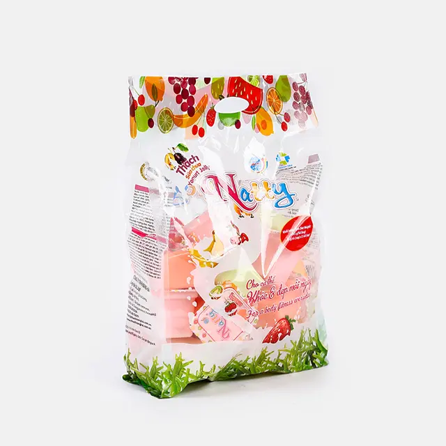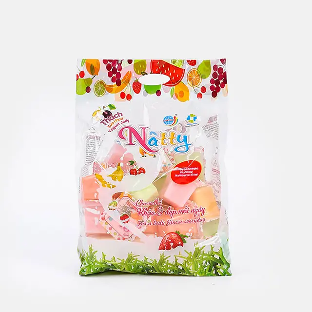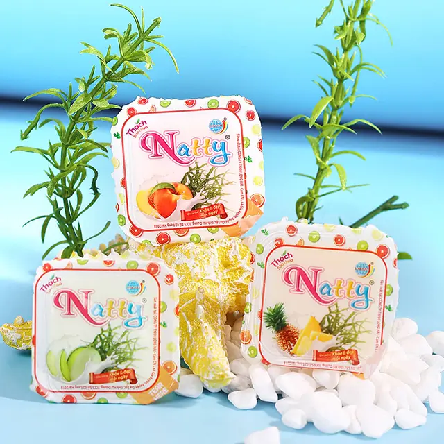 Thạch sữa chua Natty do công ty Long Hải sản xuất là sự kết hợp giữa bột Carragennan (rau câu), bột Konjac (khoai nưa) tỷ lệ 60/30, đường kính trắng, thạch dừa Bến Tre, hương vị hoa quả tổng hợp: Dừa, Cam, Đào, Dứa, Dưa, Xoài, Dâu...