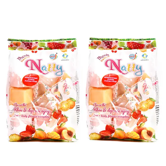 Sản phẩm Thạch Natty kết hợp một số chất bổ sung thêm như: Nước tinh lọc, đường kính trắng, sữa bột béo, tinh chất rong biển, tinh chất sữa....