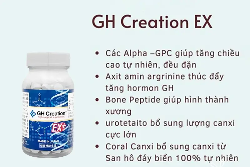 Alpha-GPC: Hỗ trợ não bộ sản sinh ra lượng Hormone tăng trưởng GH và ức chế Somatostatin (chất ngăn cản sản sinh Hormone GH), từ đó giúp phát triển chiều cao tối ưu.