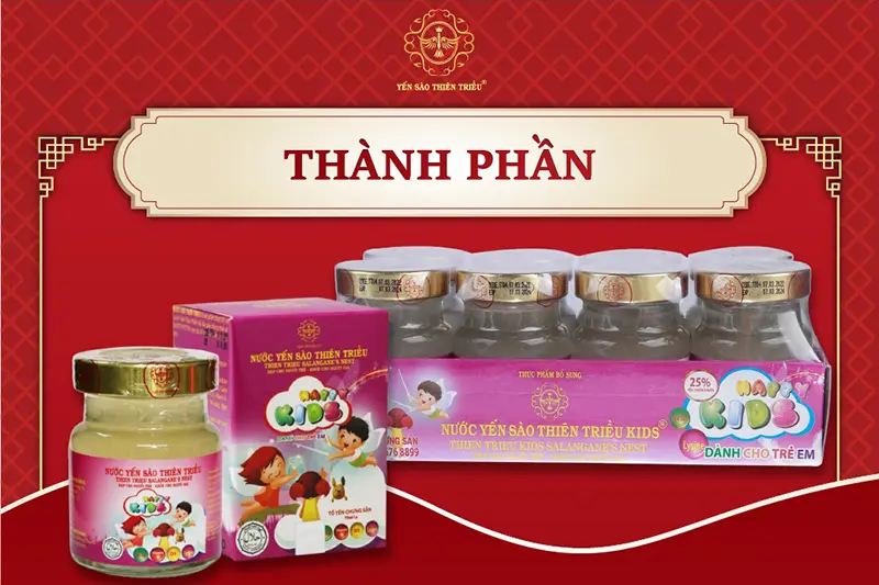 – Nước tinh khiết, yến sào, đường phèn, các phụ gia thực phẩm (406, 327, 415, 401, 211, 150d, 8492042, 431298AR).